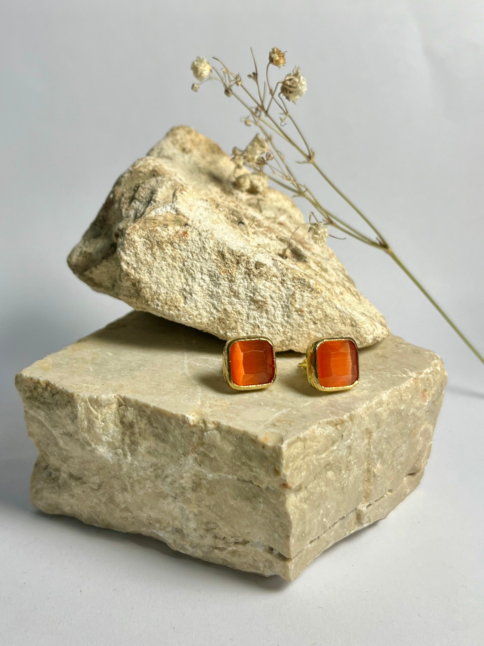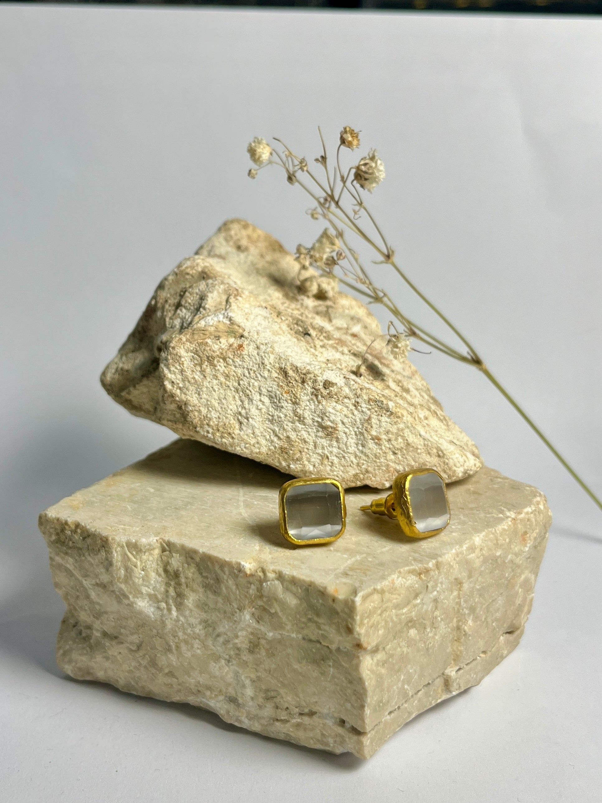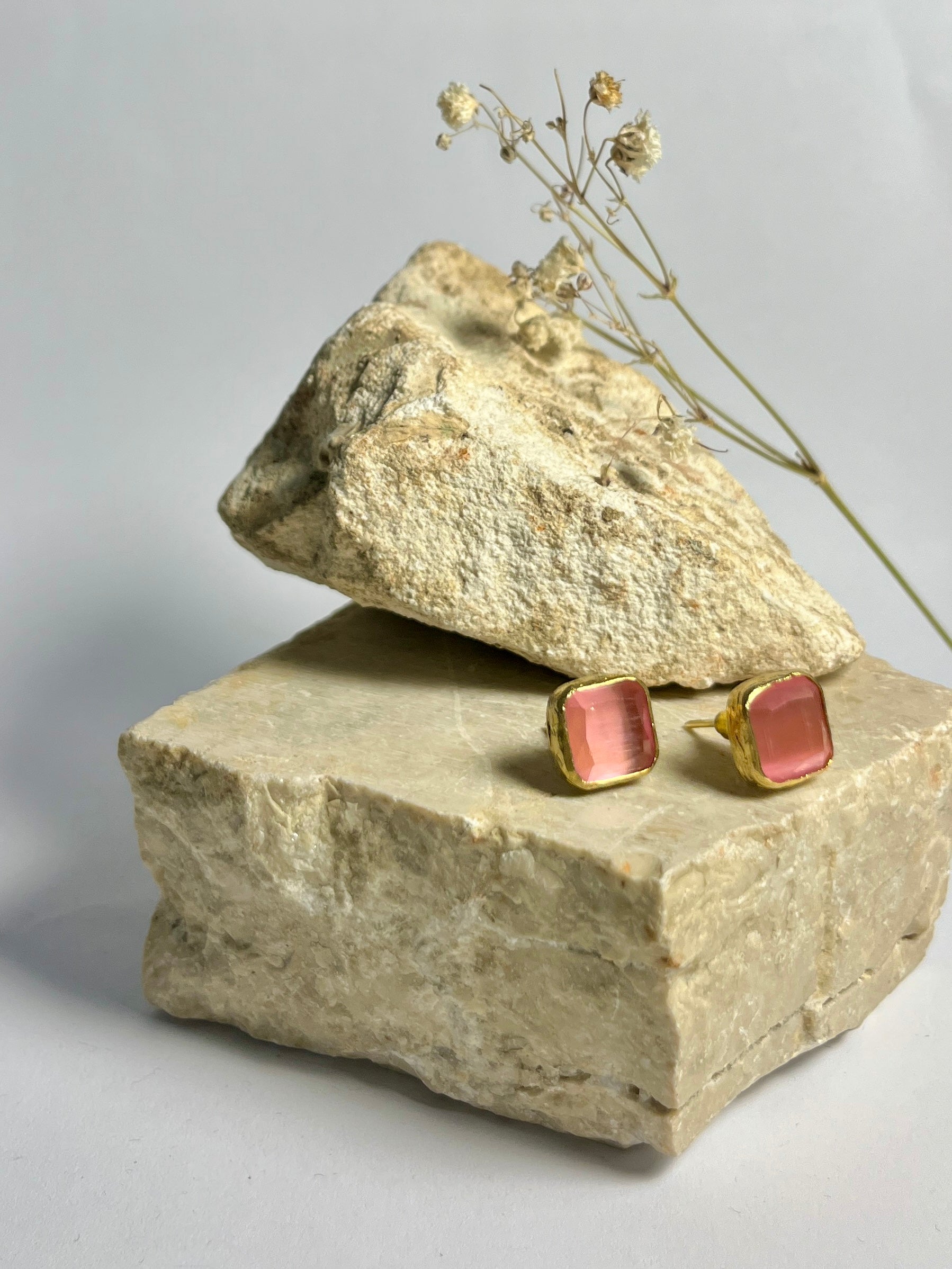 Gli orecchini quadrati Bottoncino, in bronzo e quarzo dalle divertenti sfumature, migliorano ogni giornata e preparano il tuo umore per una bella uscita (con il sorriso)!