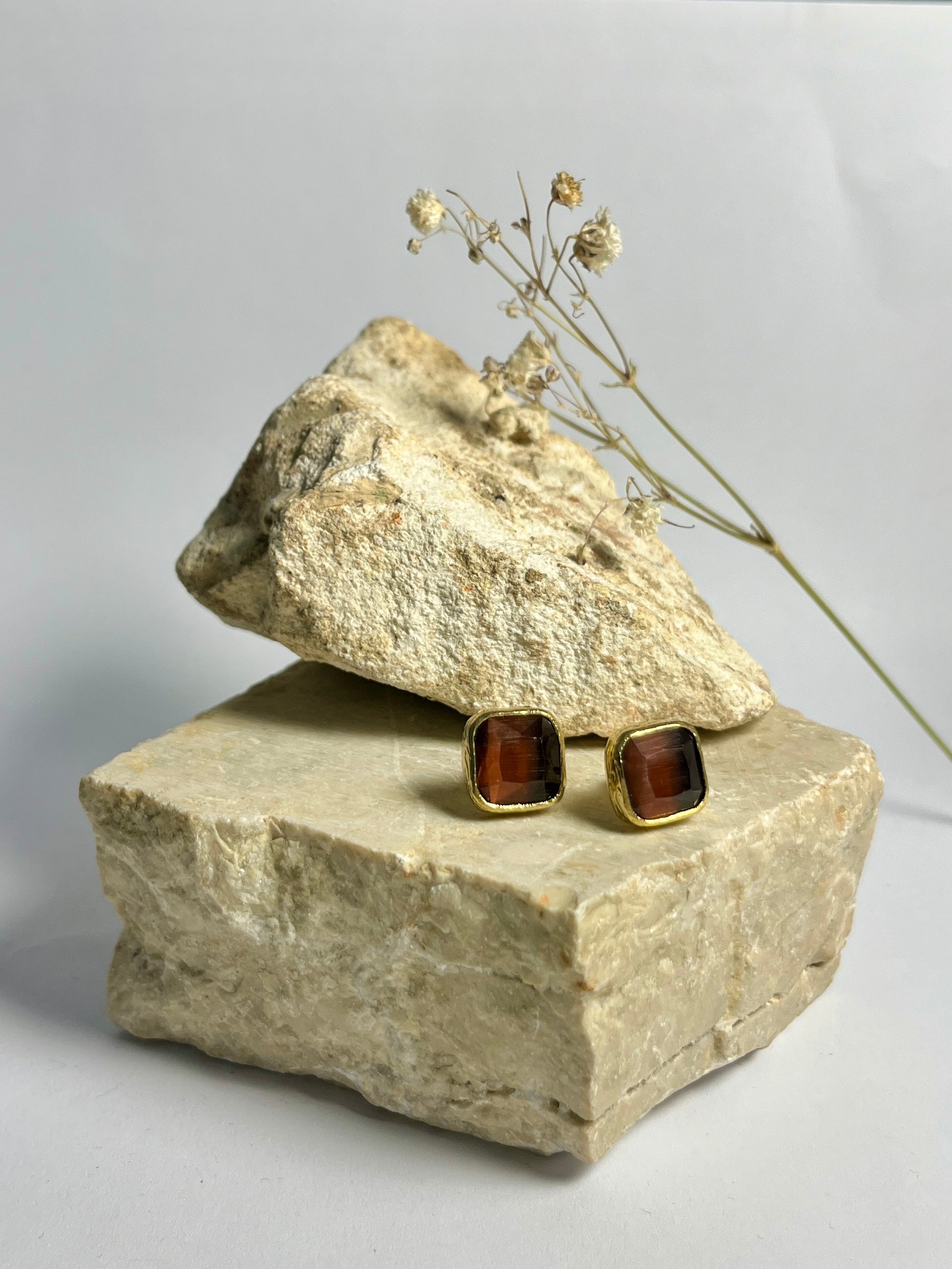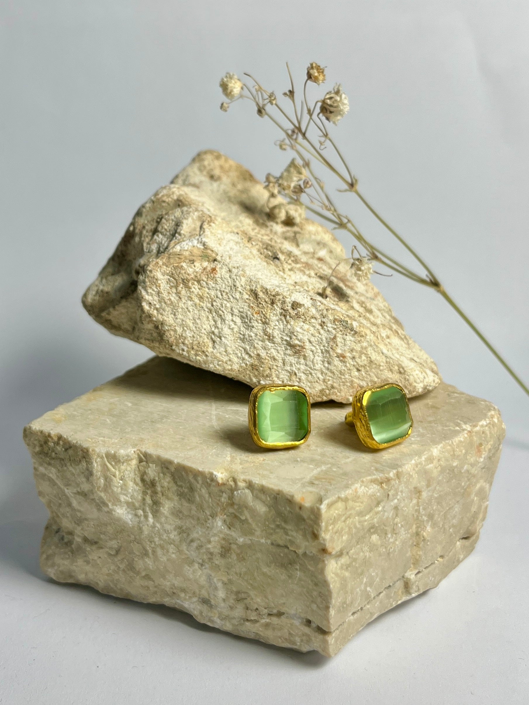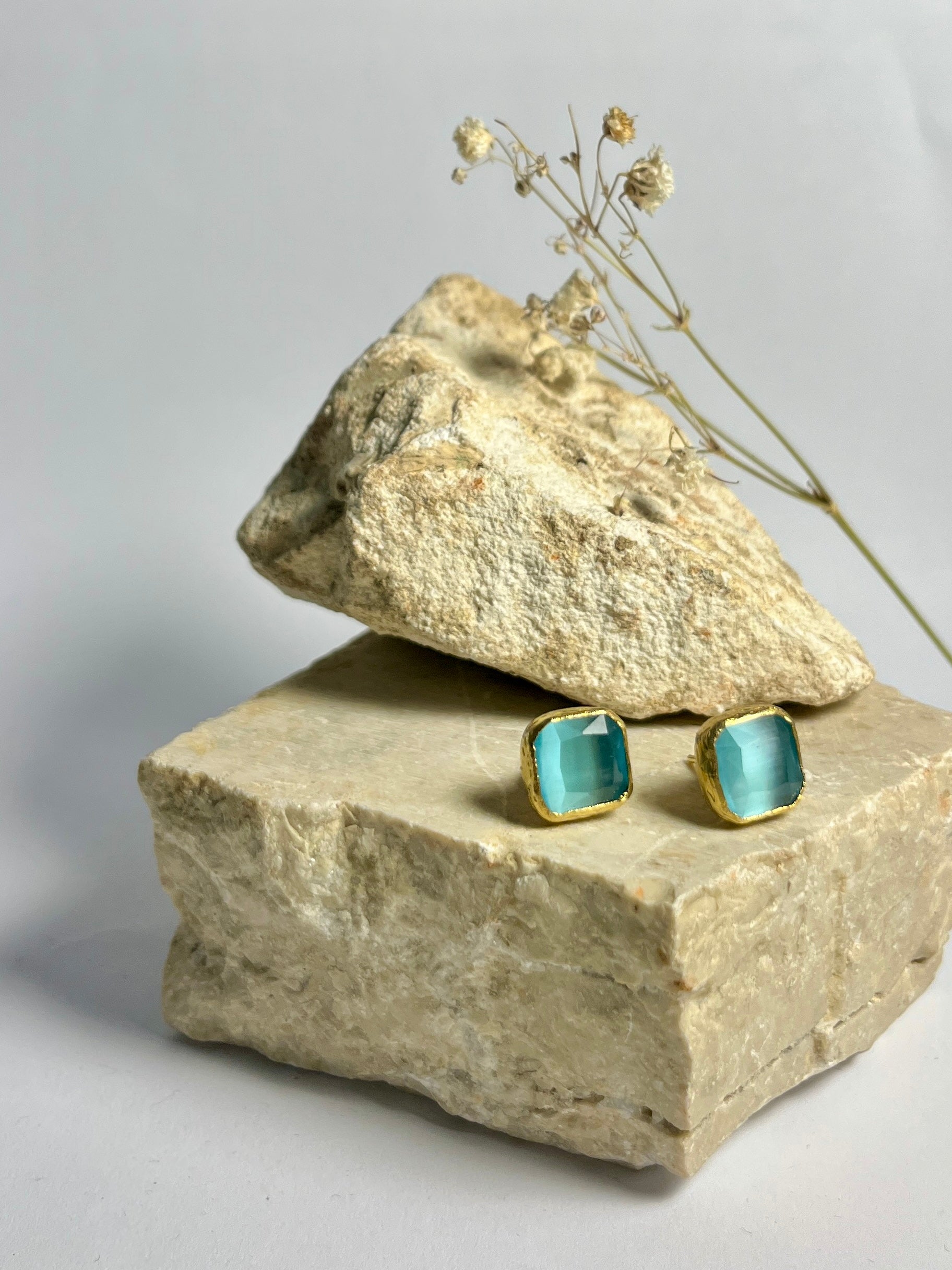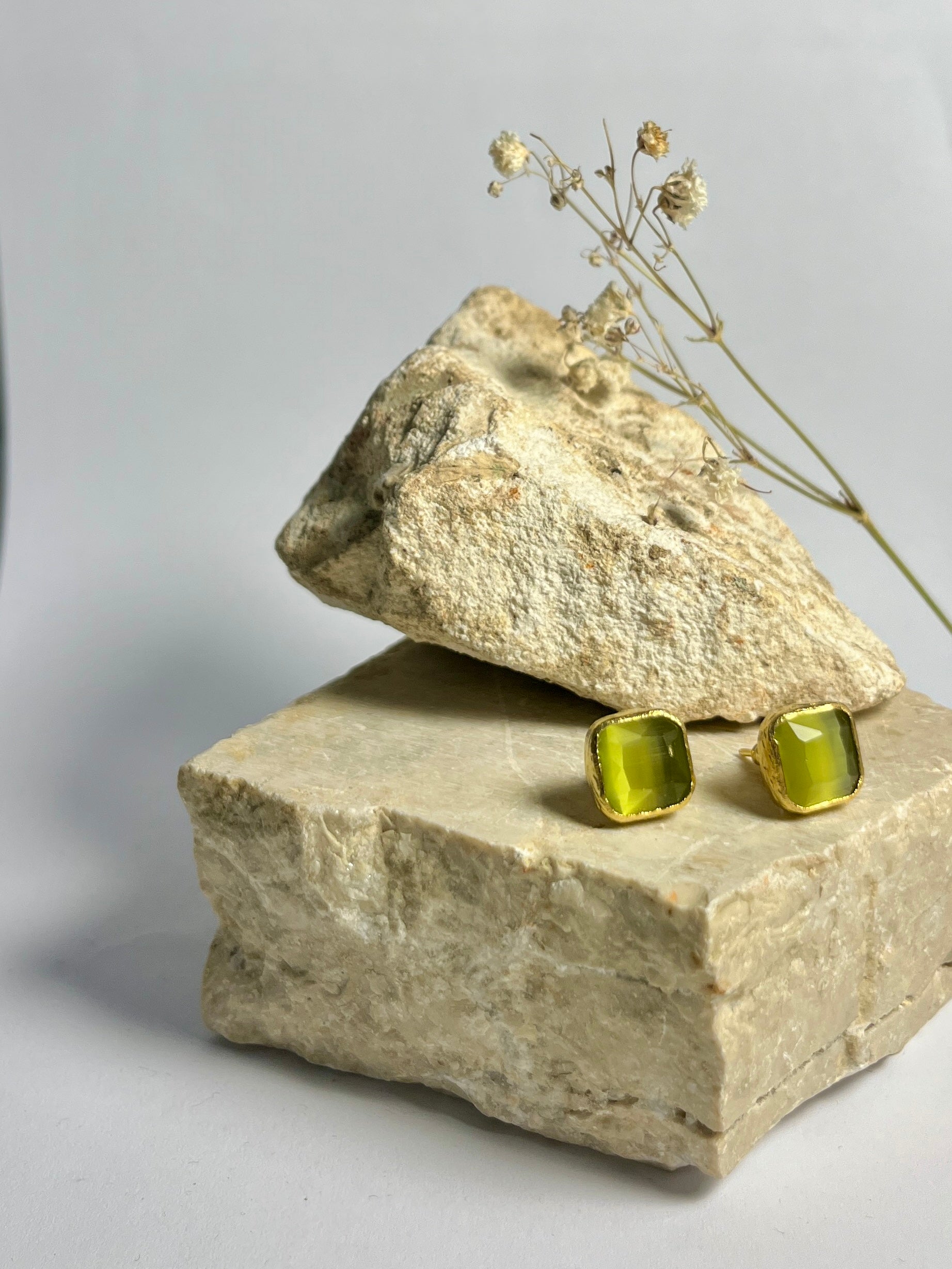 Gli orecchini quadrati Bottoncino, in bronzo e quarzo dalle divertenti sfumature, migliorano ogni giornata e preparano il tuo umore per una bella uscita (con il sorriso)!