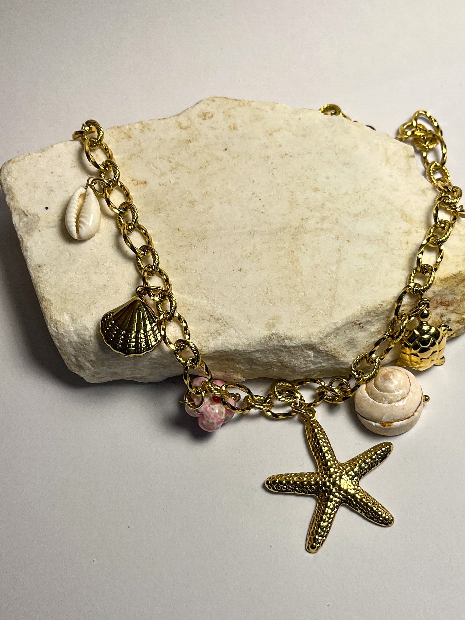 Porta con te l’energia del mare con la nostra collana con charm smaltati: un’esplosione di colori e simboli che evocano la brezza marina, la sabbia calda e le giornate di sole.