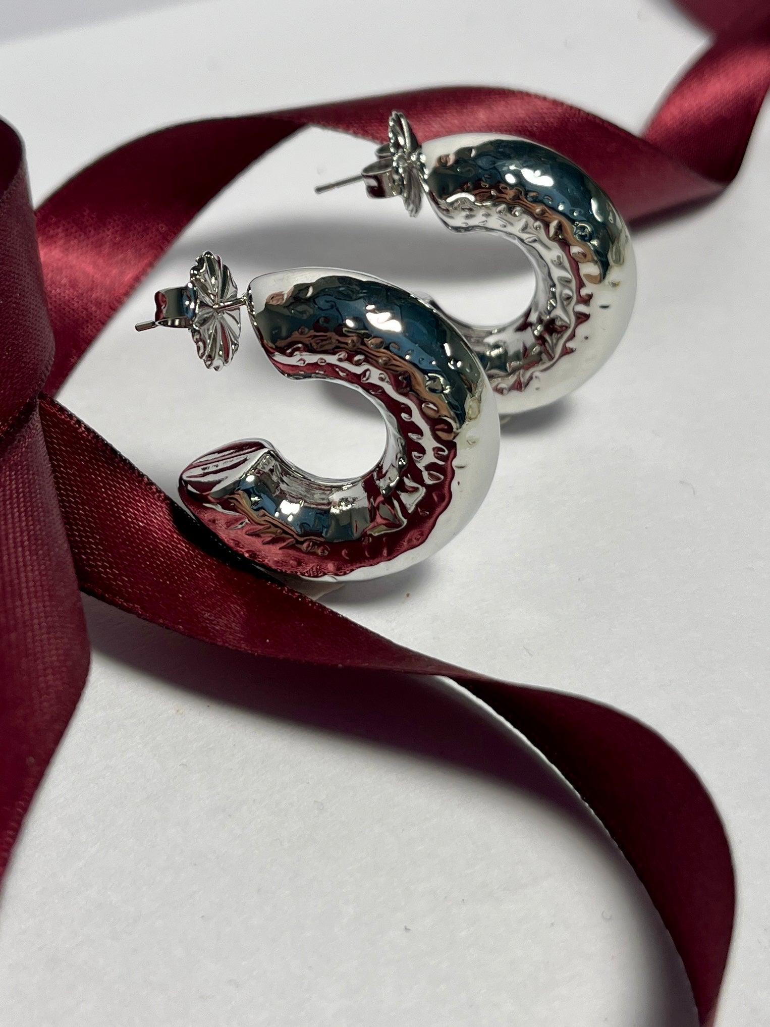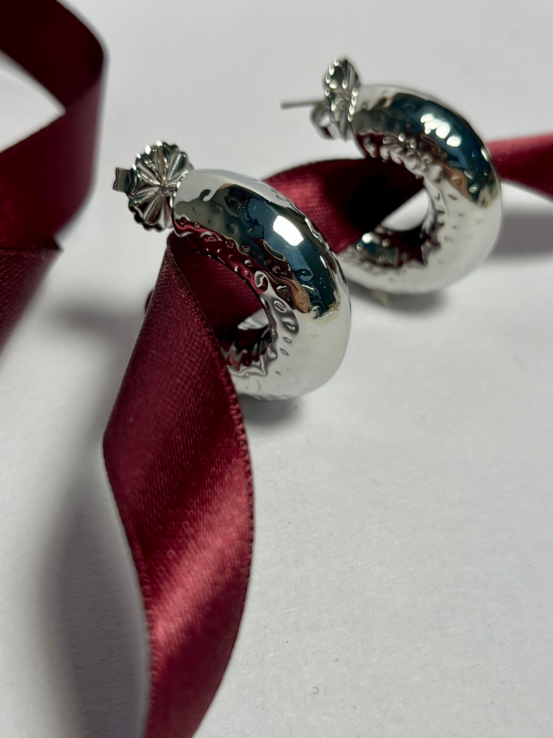 Minimalismo e carattere in un unico gioiello.Realizzati in acciaio, questi orecchini dal design organico richiamano forme naturali e sinuose, creando un effetto scultoreo e moderno.