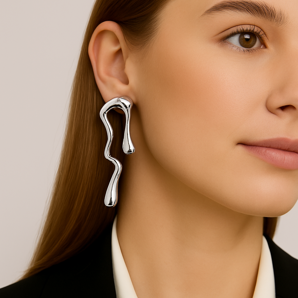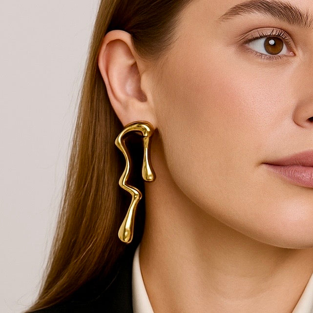 Gli Orecchini Palma sono il dettaglio che non passa inosservato: linee sinuose, design irregolare e una finitura dorata luminosa che cattura la luce ad ogni movimento.