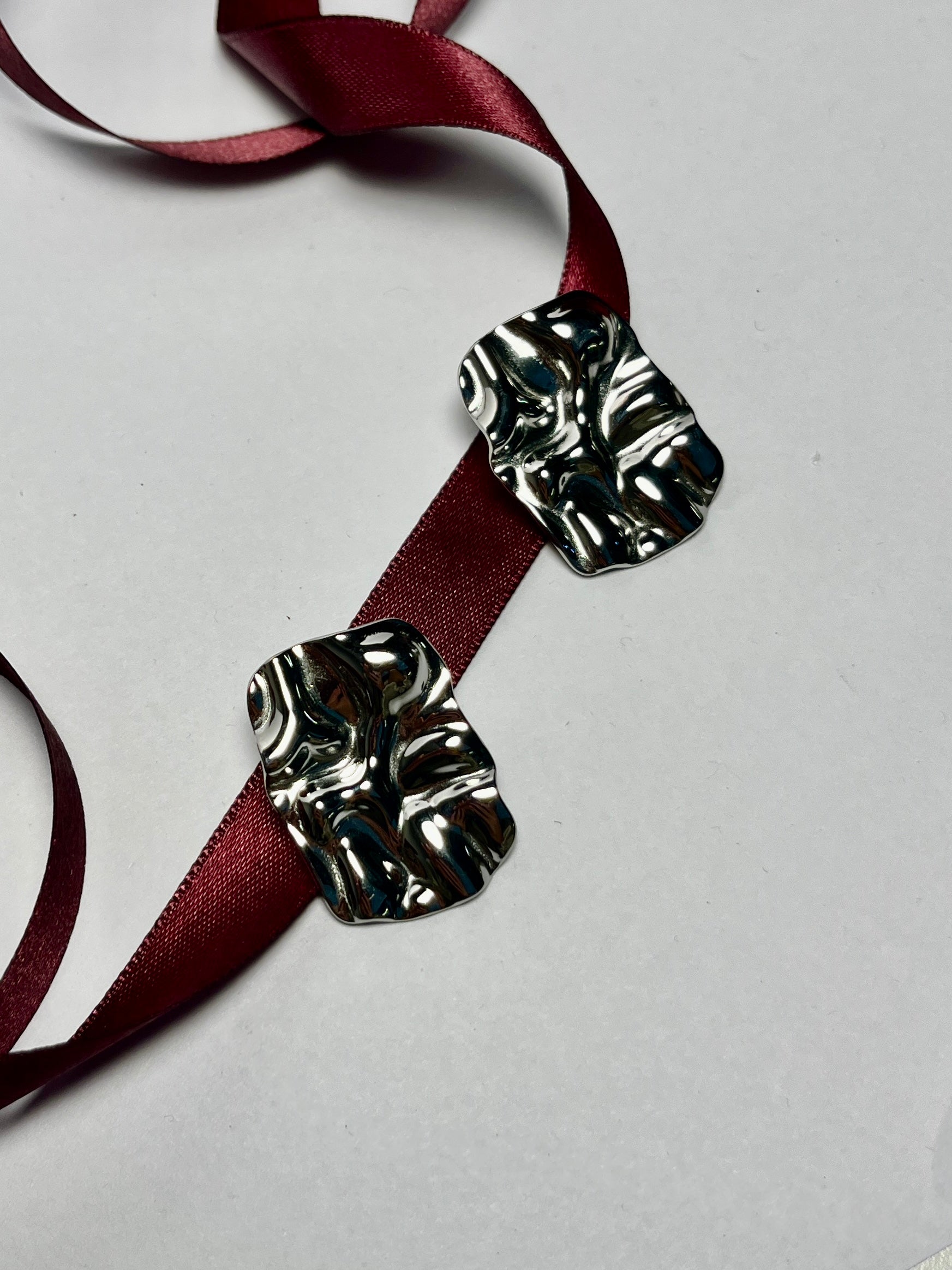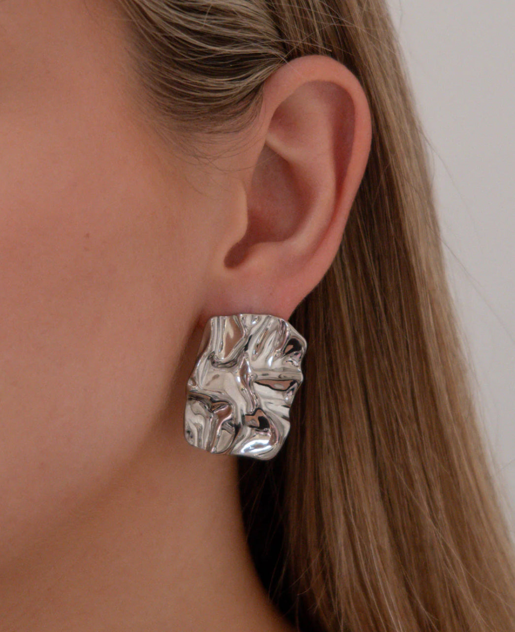 Realizzati in acciaio, questi orecchini dal design organico richiamano forme naturali e sinuose, creando un effetto scultoreo e moderno.